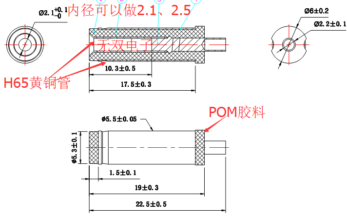 產(chǎn)品描述:OD=5.5mm,ID=2.1/2.5mm,L=22.5mm;黑膠及其它顏色,鍍層為鍍鎳或鍍金.