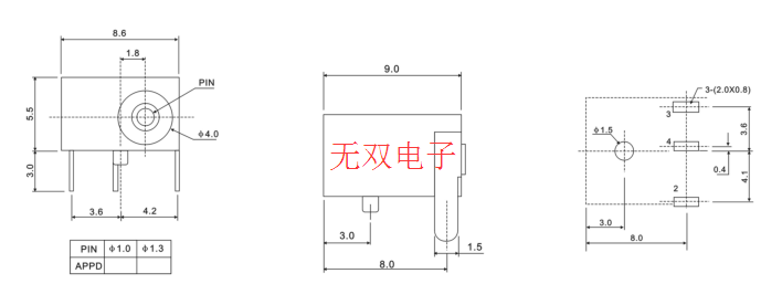 產(chǎn)品描述:內(nèi)徑4.0,針大小1.0/1.3,可以對(duì)插3.5*1.1,3.5*1.3,3*8*1.35公頭