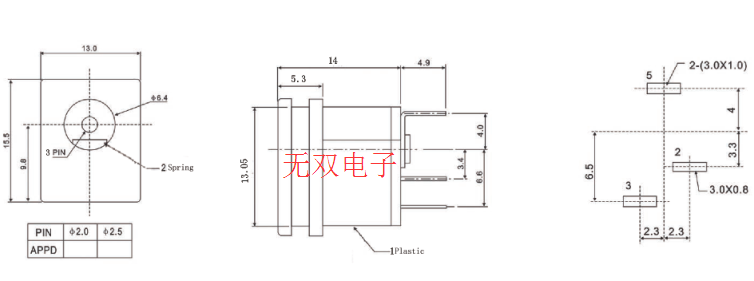 產(chǎn)品描述:內(nèi)徑6.4,針大小2.0/2.5,可以對(duì)插5.5*2.1,5.5*2.5,6.3*2.5公頭