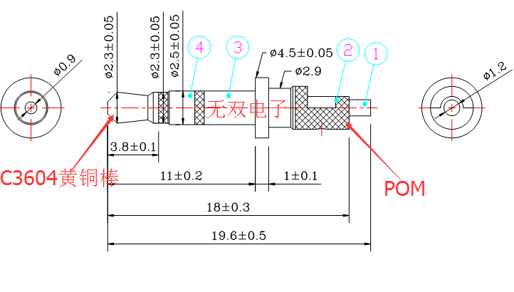 材 質(zhì):一段和三段C3604黃銅,二段H65黃銅,膠料:臺灣寶理POM環(huán)保料
