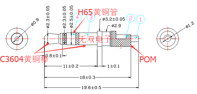 材 質(zhì):一段,三段C3604黃銅,二段:H65黃銅管,膠料:臺(tái)灣寶理POM環(huán)保料