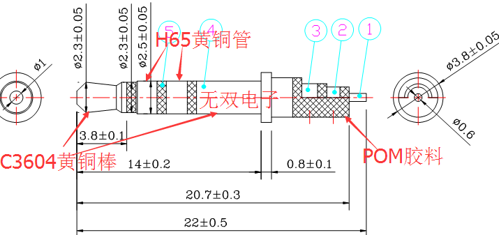 材 質(zhì):一段,三段C3604黃銅,二段:H65黃銅管,膠料:臺(tái)灣寶理POM環(huán)保料