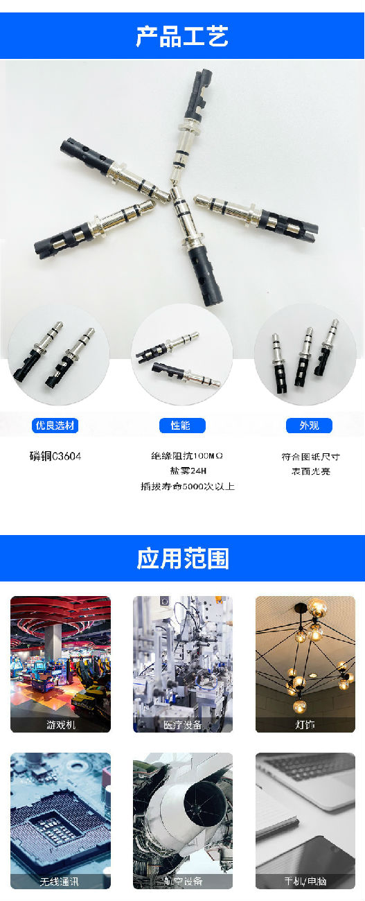 3.5立體聲音頻插針魚尾設(shè)計方便焊線