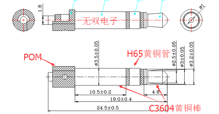 材 質:一段,三段C3604黃銅,二段H65,膠料:臺灣寶理POM環(huán)保料