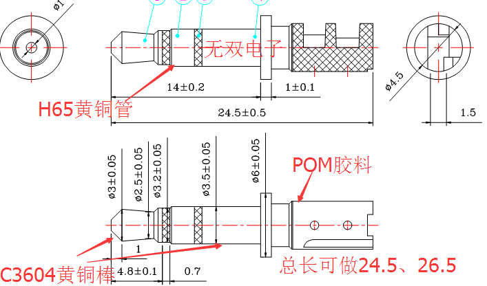 材 質(zhì):一段,三段C3604黃銅,二段H65,膠料:臺灣寶理POM環(huán)保料