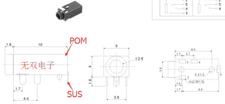 產(chǎn)品描述:2.5耳機母座,鍍層為鎳或金.