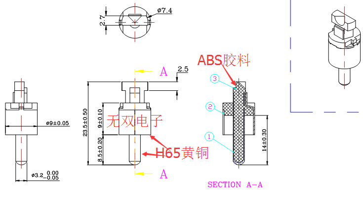 材 質(zhì):外管H65黃銅,膠料:ABS環(huán)保料