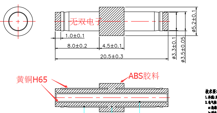 產(chǎn)品描述:OD=3.5mm,ID=1.35mm,L=20.5MM,;黑膠其它顏色,鍍層為鍍鎳.