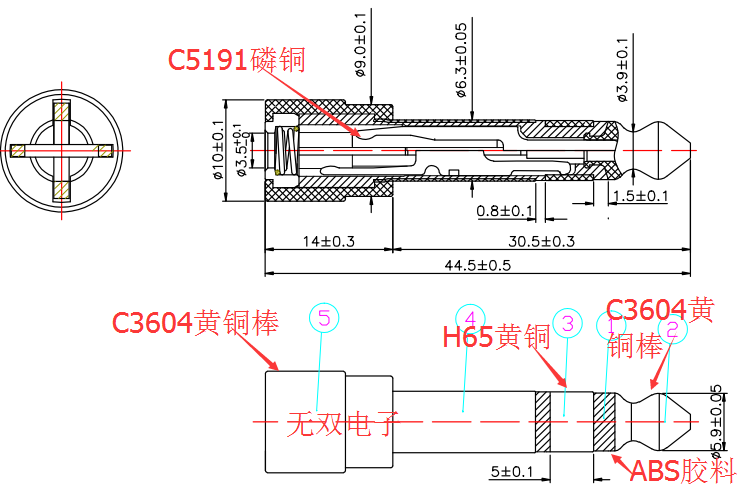 材 質(zhì):外管:H65黃銅管,端子:C5191磷青銅,膠料:PBT防火膠料