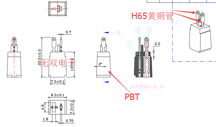 材 質(zhì):彈片:H65黃銅,膠料:PBT+15%Pb