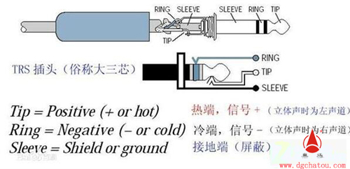 2.5mm的TRS接頭以前在手機(jī)耳機(jī)上比較流行,但現(xiàn)在已經(jīng)不多見了,耳機(jī)接口基本被3.5mm接口一統(tǒng)江湖。而6.3mm的接頭在很多專業(yè)設(shè)備和高檔耳機(jī)上比較常見,但現(xiàn)在有不少高檔耳機(jī)也逐漸開始改用3.5mm接頭。TRS的含義是Tip(signal)、Ring(signal)、Sleeve(ground),分別代表了這種接頭的3個(gè)觸點(diǎn),我們看到的就是被兩段絕緣材料隔離開的三段金屬柱。因此,3.5mm接頭和6.3mm接頭也被人稱為“小三芯”和“大三芯”。