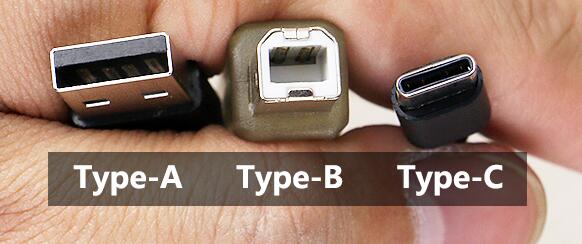 USB接口:從左到右依次為標(biāo)準(zhǔn)Type-A接口、Type-B接口及Type-C接口