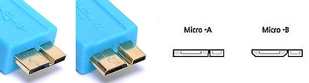 由于USB3.0接口的傳輸速度相較USB2.0有了大幅度的提高,因此它的針腳也發(fā)生了變化。這樣一來,Micro-USB3.0接口不得不在外觀上做出改變。Micro-USB3.0接口在高度上與Micro-USB2.0無異,但是長度明顯增長了。同樣的,A型和B型也在Micro-USB3.0上出現(xiàn)了……筆者真的無法理解為什么USB協(xié)會每次都要在小型的USB接口上搞個A和B,這里就不多吐槽了。