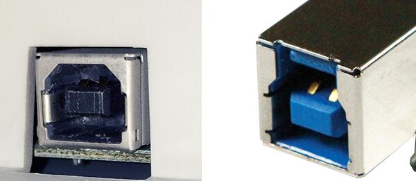 同樣是Type-B接口,USB3.0(右)比USB2.0(左)增加了接口高度