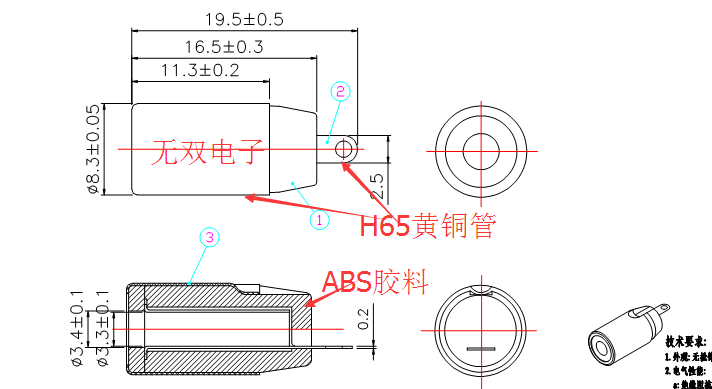 使用范圍:-20℃-----+80℃ 耐電壓:AC500V,漏電電流0.5MA,一分鐘無異狀 絕緣阻抗:大于100MΩ 插拔力:0.3-3KG 使用壽命:插拔5000次以上 鹽霧試驗:可達(dá)到24小時以上 導(dǎo)通:無短路,無斷路現(xiàn)象 焊錫性:溫度控制在350℃±10℃, 焊錫時音3-5秒鐘,擴(kuò)散良好,被焊錫物拉拔不造成焊面脫離,容易上錫