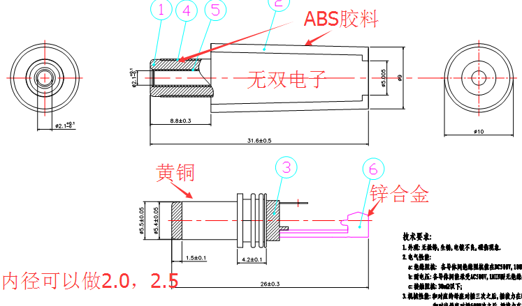 使用范圍:-20℃-----+80℃ 耐電壓:AC500V,漏電電流0.5MA,一分鐘無異狀 絕緣阻抗:大于100MΩ 插拔力:0.3-3KG 使用壽命:插拔5000次以上 鹽霧試驗:可達到24小時以上 導通:無短路,無斷路現象 焊錫性:溫度控制在350℃±10℃, 焊錫時音3-5秒鐘,擴散良好,被焊錫物拉拔不造成焊面脫離,容易上錫